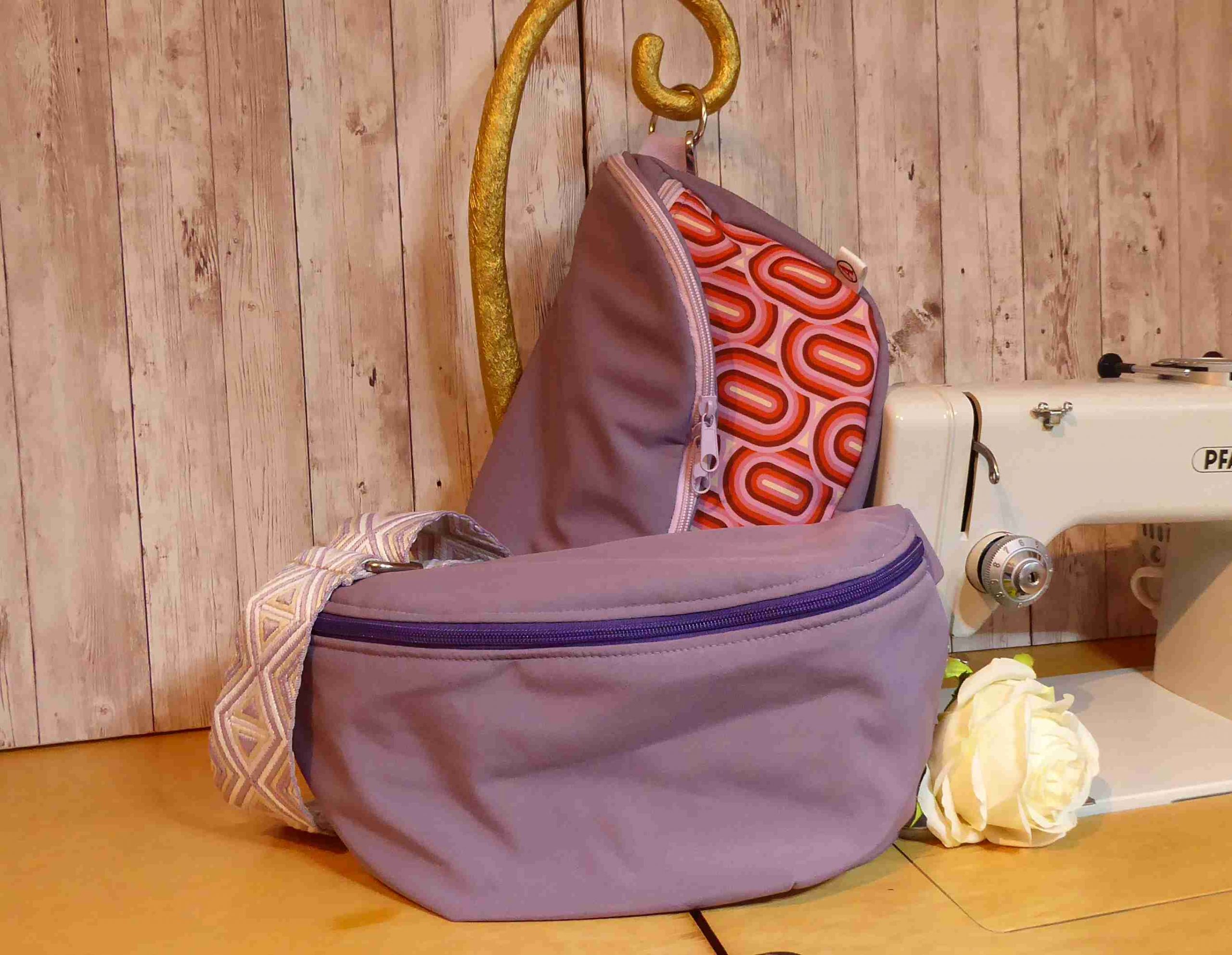 Die Moon Bag sieht aus wie eine Cross Over Bag und wird auch genau so getragen. Unter dem Überschlag verbirgt sich die Extratasche, in der das Handy bestens untergebracht ist. Solltet Ihr das eine Teil mehr dabei haben, bietet sie mit hochgestelltem Überschlag eine Platzreserve.